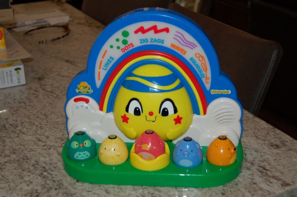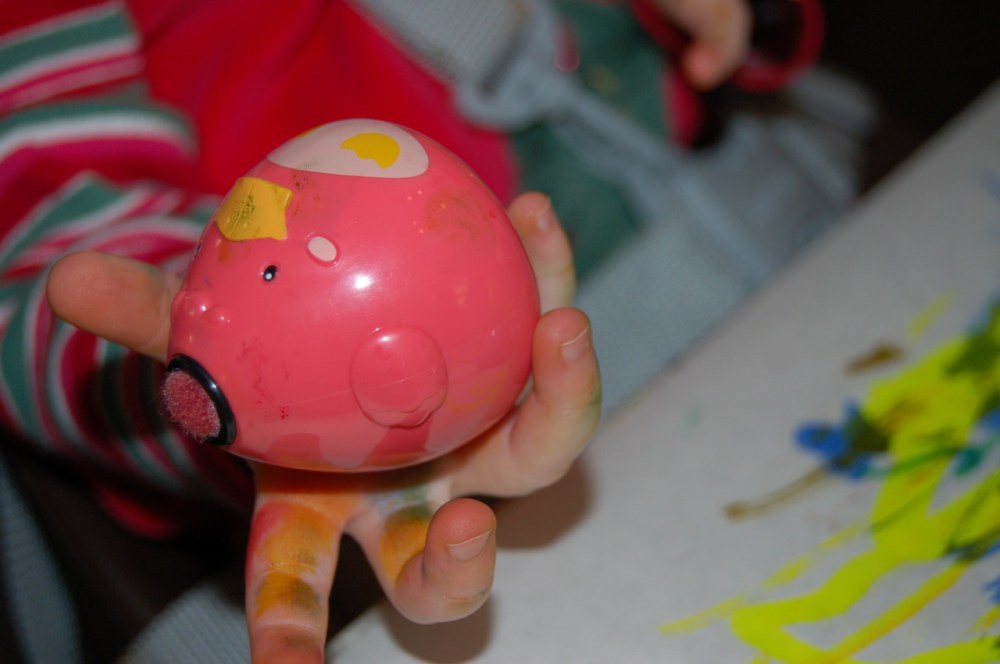 Santa delivered her Sit and Spin to Valdosta, but saved the rest of her stuff for home. The red spot on her head? One of four goose eggs she got over Christmas. Heidi – 0 Floor (x2), brick step, tub – 4