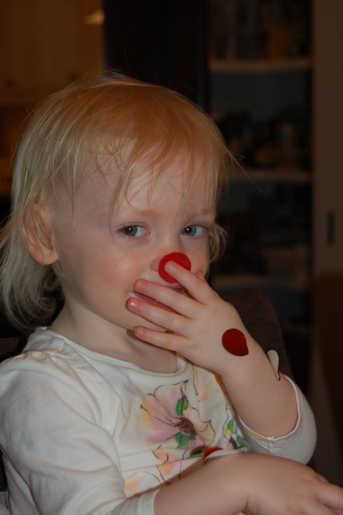 “Score! Swiped the bottle from Heidi’s baby doll! Now, how do you get the milk out?”