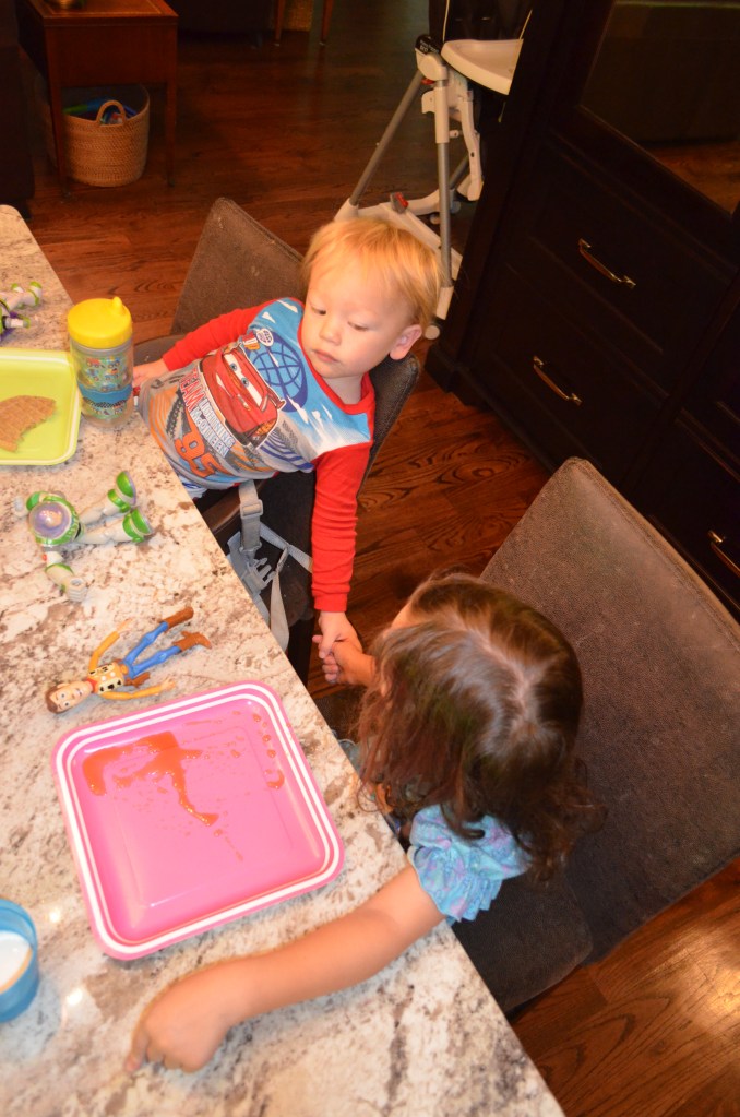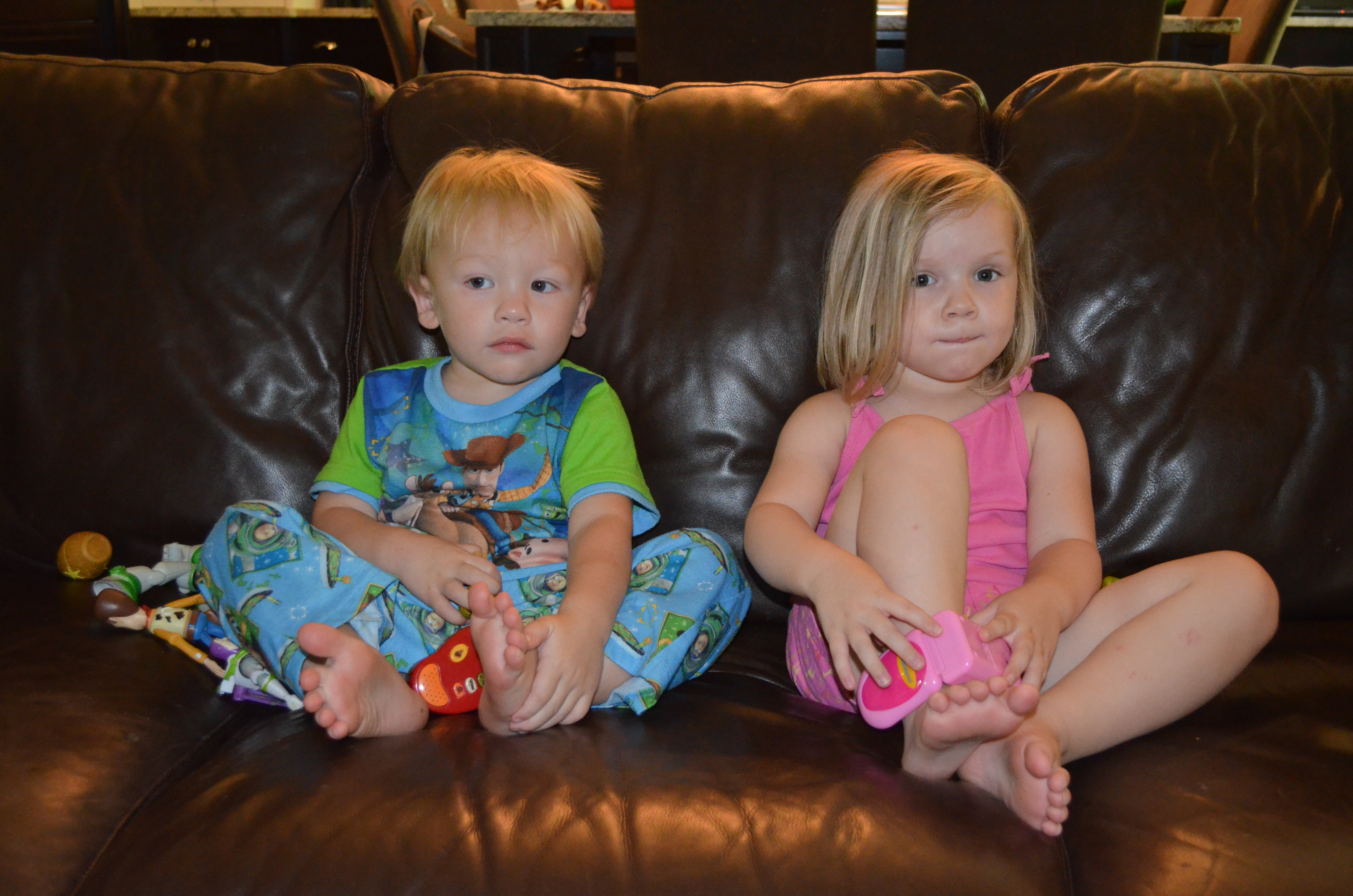 So, Mike has been out of town for a few days. As such, the kids were very excited when he got home tonight around 7:00 and both of them wanted him to put them “night-night.” Of course, he can only put one down at a time so when he got Wyatt down he joined Heidi and me in her big girl bed for the tail end of the story I was reading. Heidi had to scoot over to make room for all of us in her daybed and I heard a little squeak as she did. “Heidi was that you? Did you toot toot?” I said. She replied, “Yes, my hiney maked that sound.” In the next breath, as she took my face in her hands, she said very seriously, “Mommy, that was Daddy. He toot toot. Not me. It WAS Daddy.”